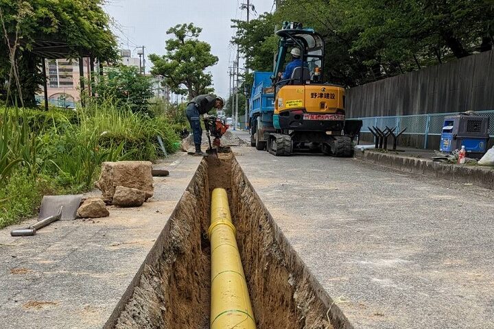 ガス管工事現場工事において、正確で丁寧な施工を徹底しています。ごとに異なる条件や環境に応じた最適な施工方法を選択し、測量や配管接続、埋設作業まで一つひとつの工程を確実に行うことで、高品質な仕上がりを実現しています。また、最新技術や工法を積極的に取り入れ、従業員一人ひとりの技能向上にも力を入れることで、安心で長く使えるインフラ整備に貢献しています。